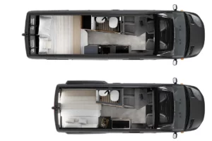Long d’environ 7 mètres dans sa version la plus ambitieuse, ce nouveau campervan se distingue par une silhouette imposante et musclée. Les protections de soubassement, les pneus tout-terrain, les suspensions renforcées et la carrosserie travaillée lui donnent un look de véritable « baroudeur » prêt à quitter l’asphalte.